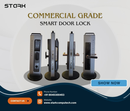 Secure your business with the Commercial Grade Smart Door Lock from Stark Computech. Designed for durability and high-traffic use, it offers keyless entry, fingerprint & RFID access, PIN code, Wi-Fi connectivity, and mobile app control. Built with advanced encryption for maximum security, this lock is perfect for offices, hotels, and commercial spaces. Easy installation, stylish design, and robust performance ensure safety with convenience. Upgrade to smarter commercial security today.