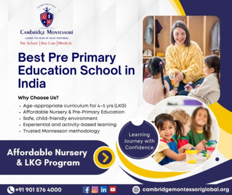 Enroll your child in the Best Pre Primary Education School in India. Cambridge Montessori offers an affordable nursery and LKG program focused on holistic development, interactive learning, and a strong academic foundation for 4–5-year-olds.