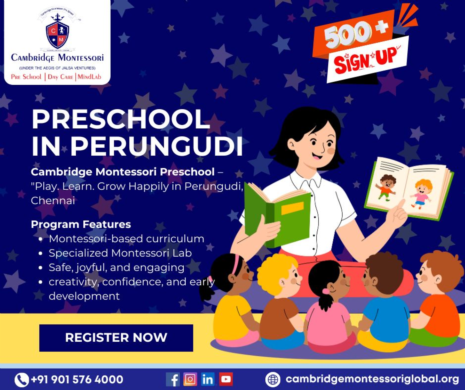 Best Preschool in Perungudi – Cambridge Montessori is recognized as a Best Montessori Preschool in Perungudi. With dedicated teachers, a unique Montessori Lab, and a focus on early childhood development, we foster curiosity, creativity, and confidence.