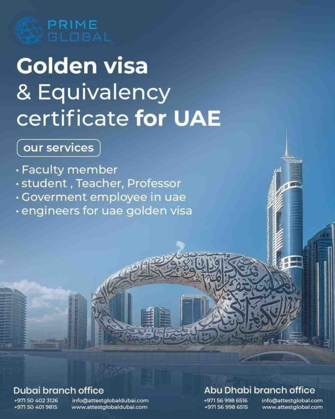 Planning to move to or already living in the UAE? Prime Global Attestation is your trusted partner for certificate attestation, family visa processing, and equivalency certificate services.