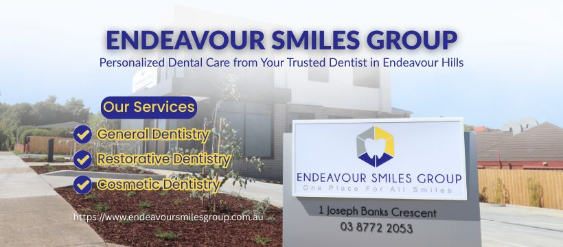 Endeavour Smiles Group is a trusted dental clinic in Endeavour Hills, Victoria, delivering comprehensive dental care for individuals and families. Our experienced dentists provide preventive dentistry, routine check-ups, cosmetic dentistry, and restorative treatments tailored to each patient. Using modern dental technology in a calm, welcoming environment, we focus on long-term oral health and patient comfort. Conveniently located in Endeavour Hills, we proudly serve nearby Melbourne suburbs with clear communication, flexible appointments, and patient-first care. Whether you need a local family dentist, ongoing dental care, or smile-enhancing treatments, Endeavour Smiles Group is here to support your confident, healthy smile.