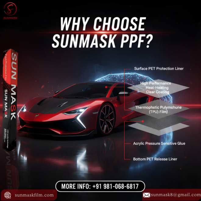 Sunmask film trusted PPF for car to keep them looking shiny. Our high-quality PPF film serves as invisible protection from yellowing, chipping, and scratches. In addition to protecting your car, paint protection film of our car auto detailing, maintains its glossy finish, providing you with daily peace of mind and a long-lasting shine.