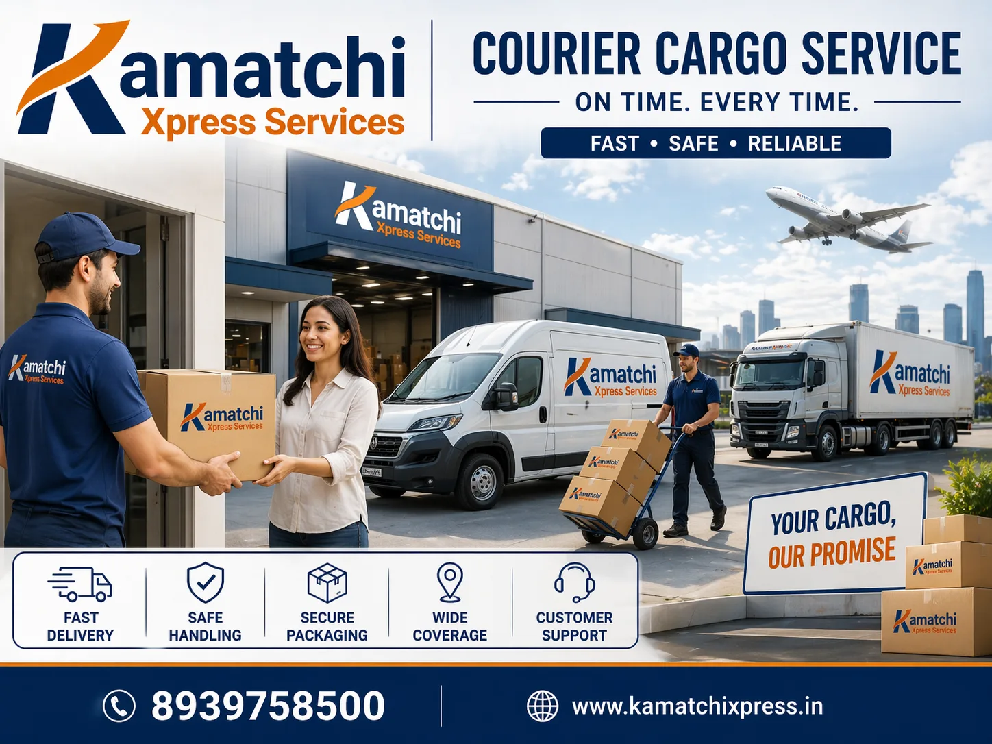 kamatchi xpress Specializes in international courier service 8939758500 with door-to-door pickup and delivery. They cater to over 200 countries, including the USA, UK, Canada, and world wide services. We send courier on Documents, Food items, Sweets, Snacks, Masala, Pickels, Dresses, Gift itmes, Artifical material, wooden material, golu dolls, Industrial goods and etc.