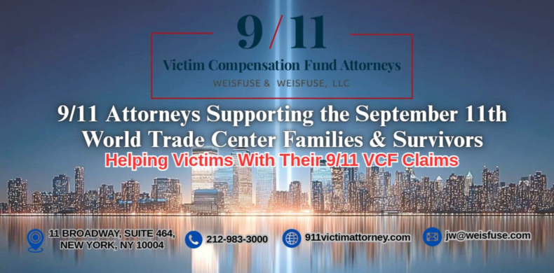 Weisfuse & Weisfuse, LLC - 9/11 Attorneys are a 9/11 Victim Compensation Fund law firm with extensive experience helping 9/11 WTC victims secure the financial compensation and medical treatment they deserve. If you suffer from a 9/11-related illness, we will be your advocates, providing personal attention every step of the way. If you are interested in making a claim either for yourself or on behalf of a deceased loved one, the experienced 9/11 attorneys at Weisfuse & Weisfuse, LLC are here to help you navigate through every step of the way.